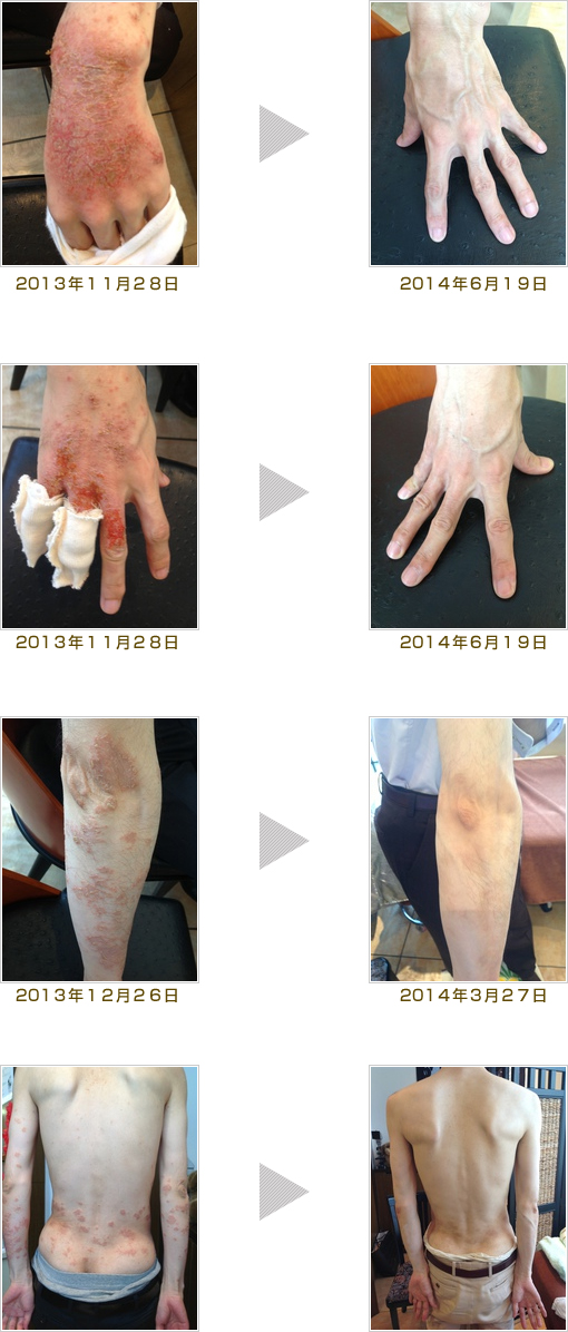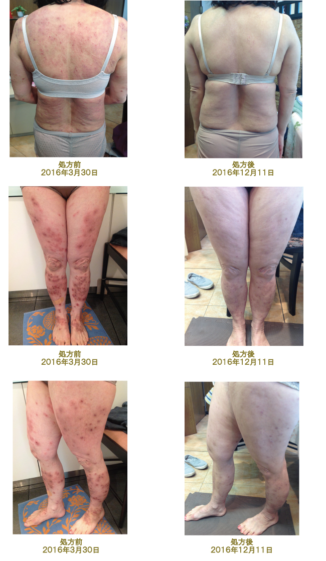 症状悪化以前は、皮膚科医師の処方する服用、外用薬で対処してきましたが、今後も全身に対して同様の対処を行っていくと考えると気が遠くなり、根本的な改善を考えました。