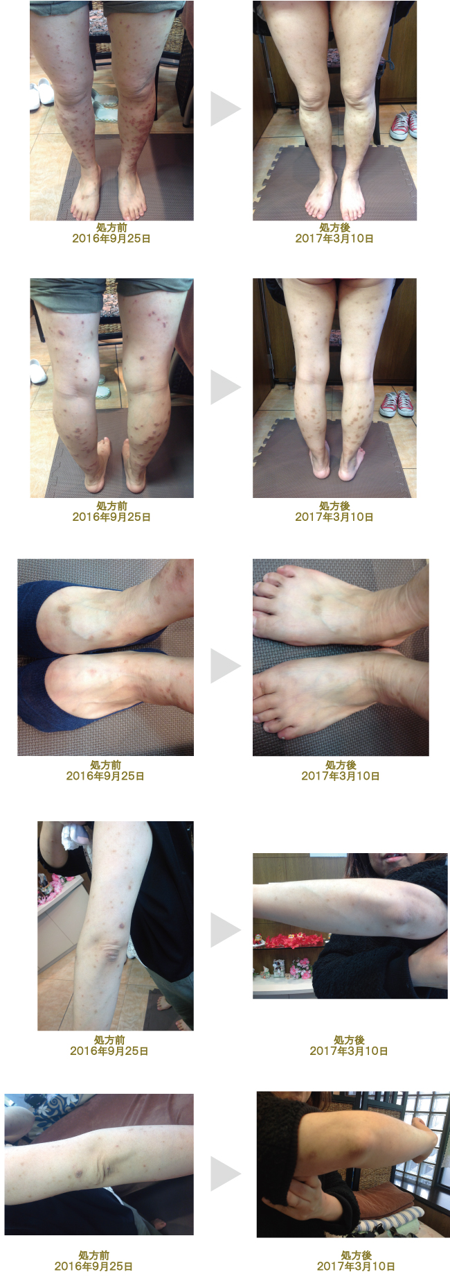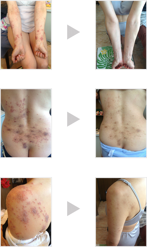 食事制限と漢方の服用を始めてから徐々に、1か月程で皮疹が色素沈着を残すことが