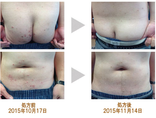 気を緩めず、継続して服用したところ、悪化時に現れた発疹は治まり、以前から悩まされていた発疹にも改善が見えてきました。