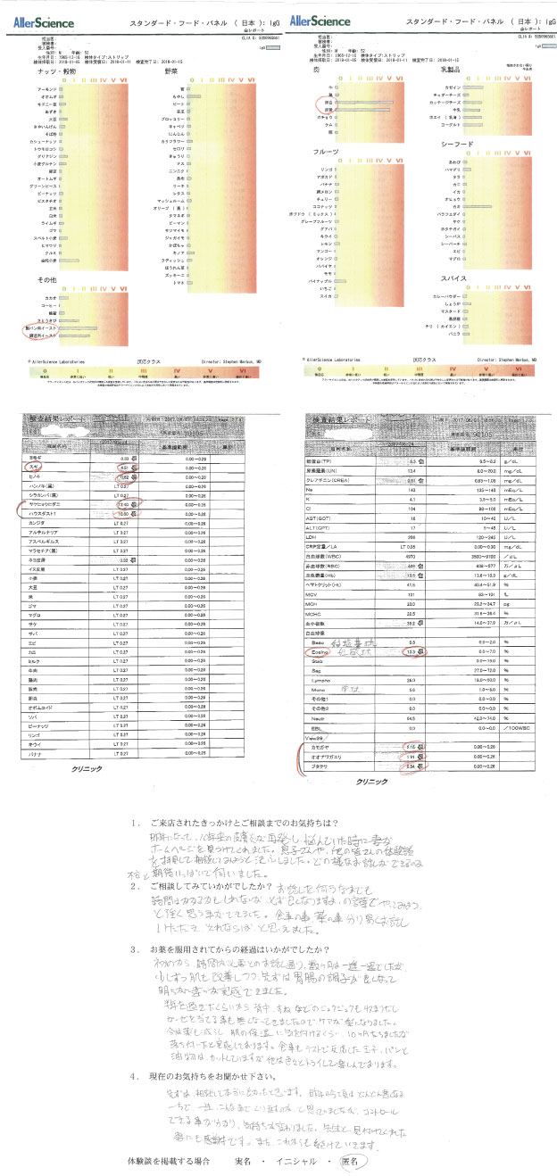食生活の細かな指導のおかげで、自分の体をつくっている食べ物への関心が高まりました。本当によく話を聞いて下さいました。病気は気から、ストレスも体質をつくることが理解できました。
