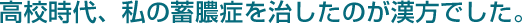 高校時代、私の蓄膿症を治したのが漢方でした。